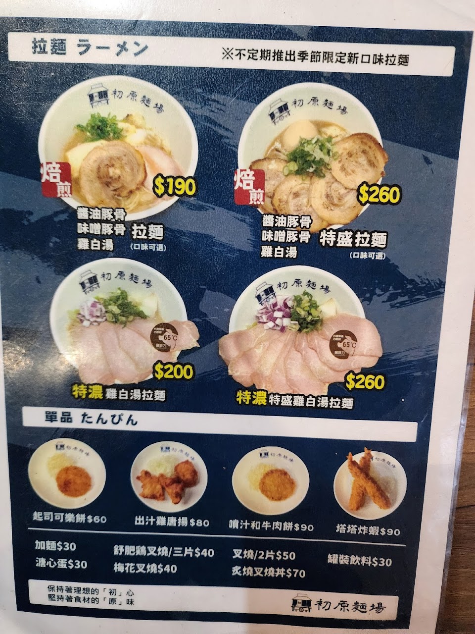 2024最新在地推薦餐廳的菜單_初原麵場(板橋合宜店)的菜單、圖片