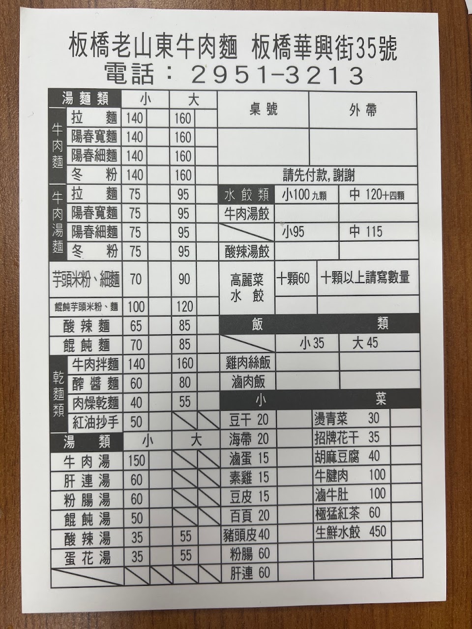 2024最新在地推薦餐廳的菜單_板橋老山東牛肉麵的菜單、圖片