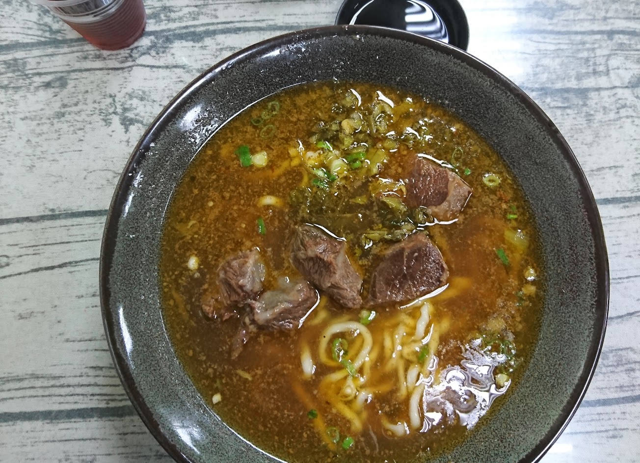 牛肉麵很普通,湯頭淡無香氣,牛肉無味,拉麵條吃起來粉味重,不扎實。水餃算好吃。辣椒不辣,醬油死鹹。