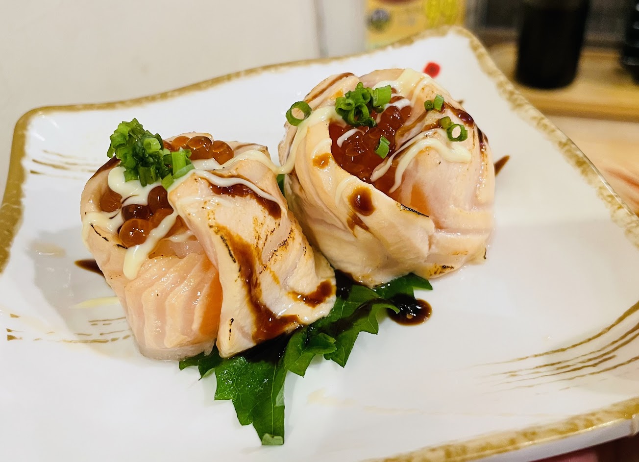 鮭魚親子軍艦是本身就炙燒嗎?我還以為我點錯了?結果看別人的照片好像不是欸⋯師傅可能太累了唄⋯⋯