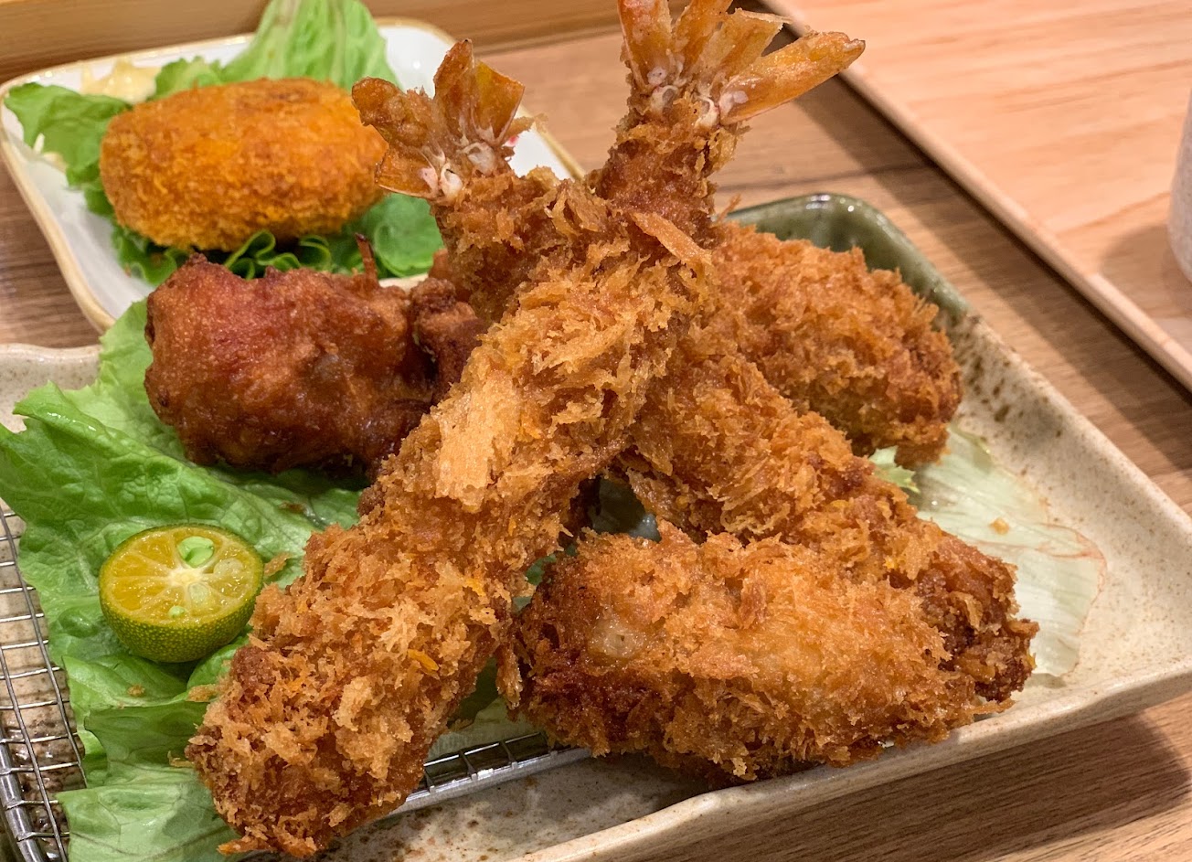 點了炸蝦牡蠣唐揚雞,竟然點餐完五分鐘內就上菜,推測不是現炸的,只能說還好還有點餘溫。但炸蝦超級難吃,其中一隻很黑又硬,另一隻像在吃美式熱狗、皮超厚。完全無法昧著良心給五星啊,不會回訪。