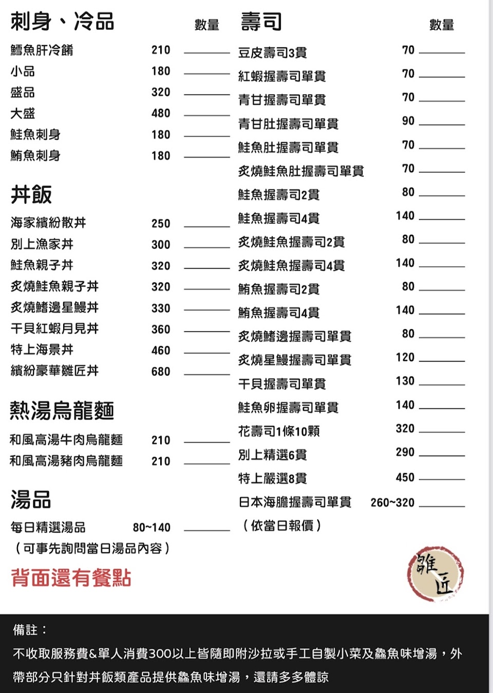 2024最新在地推薦餐廳的菜單_雛匠日本料理店的菜單、圖片