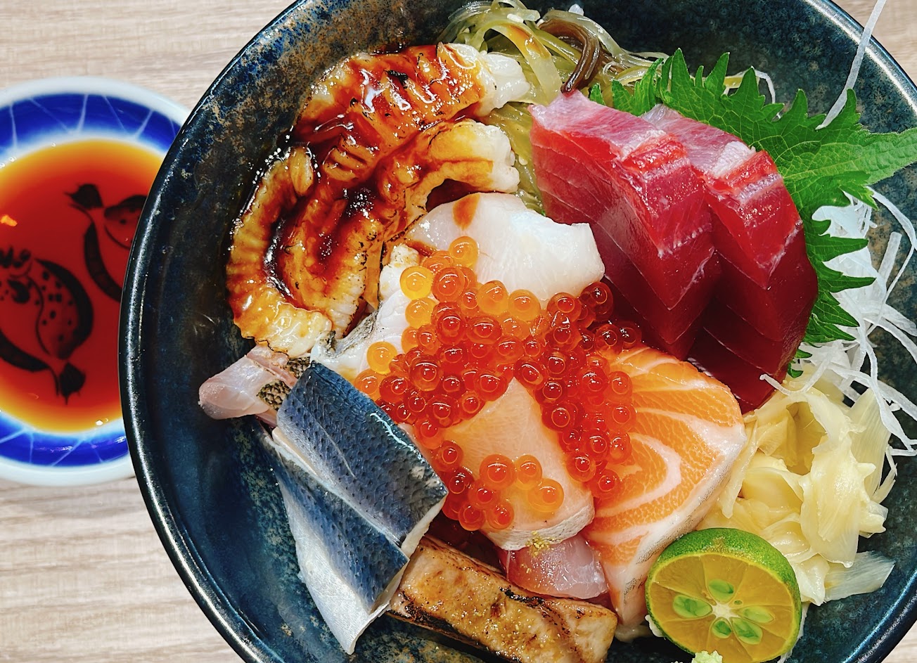 丼飯好吃、生魚片口感很棒,默默收入口袋名單。不知不覺就吃超過1,800了,現在母親節活動滿1,800會有鮭魚頭喔!