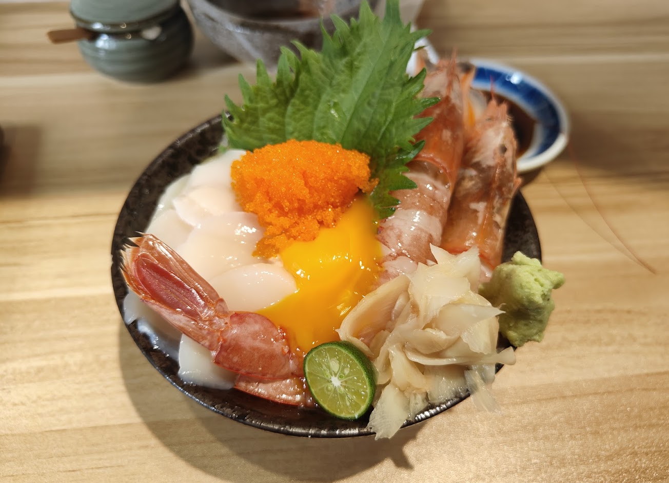 這次是點干貝紅蝦月見丼,海鮮吃起來很新鮮不會有腥味~