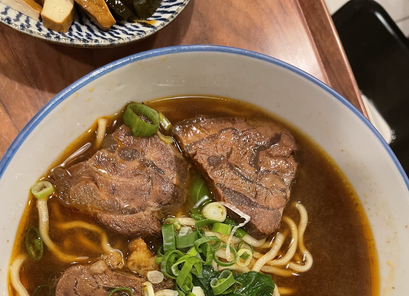 牛肉麵的湯頭是我喜歡的微微甜不會死鹹,清燉湯也很清爽清香,之前是在Ubereats上看到,點過有10幾次都很好吃,後來到店面發現是一間有點古早味的風格,非常喜歡。最後如果是現場內用超級推蔥抓餅!外皮酥脆、內部軟嫩有嚼勁,非常美味,每次都要點???(現場現點現吃真的好好吃,想到就流口水)
