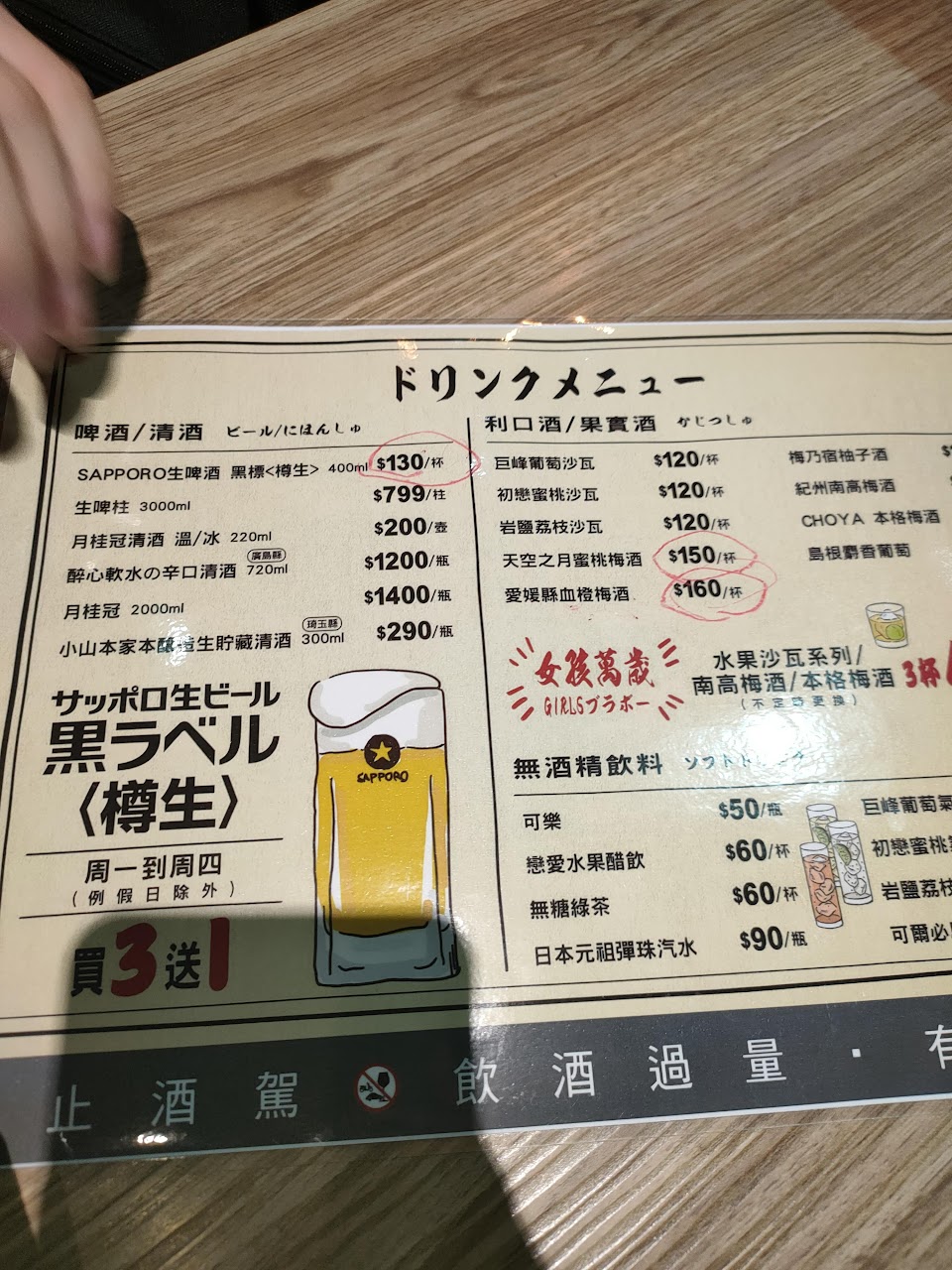 生啤酒買三送一