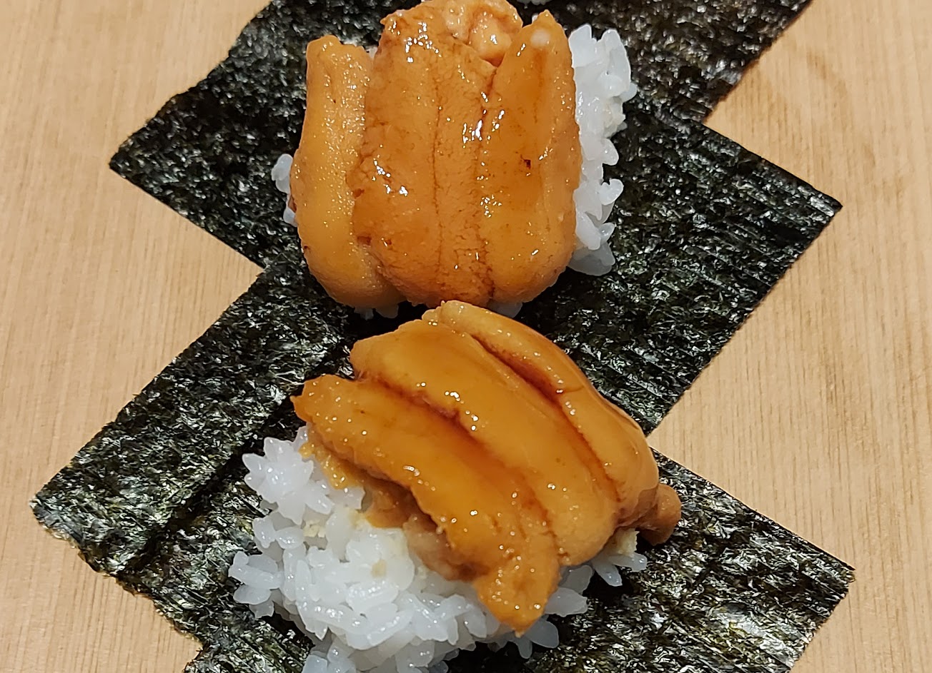 海膽 另一個是鮮蝦握壽司, 蟹肉握壽司, 海膽鮑魚