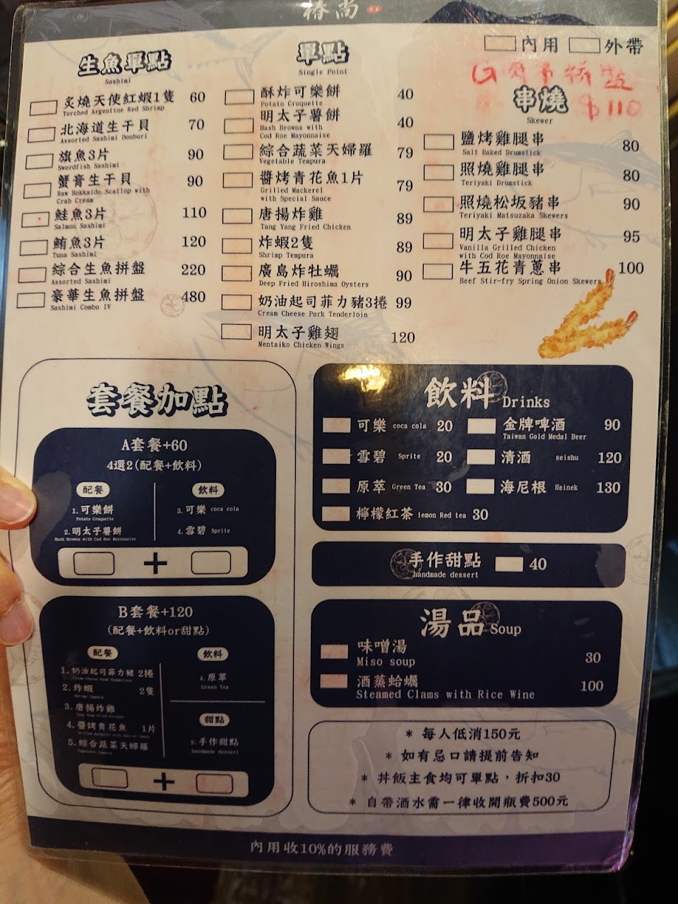 服務態度是很好 但是這麼台式的日料 加上開店的位置 10%服務費是建議不要收