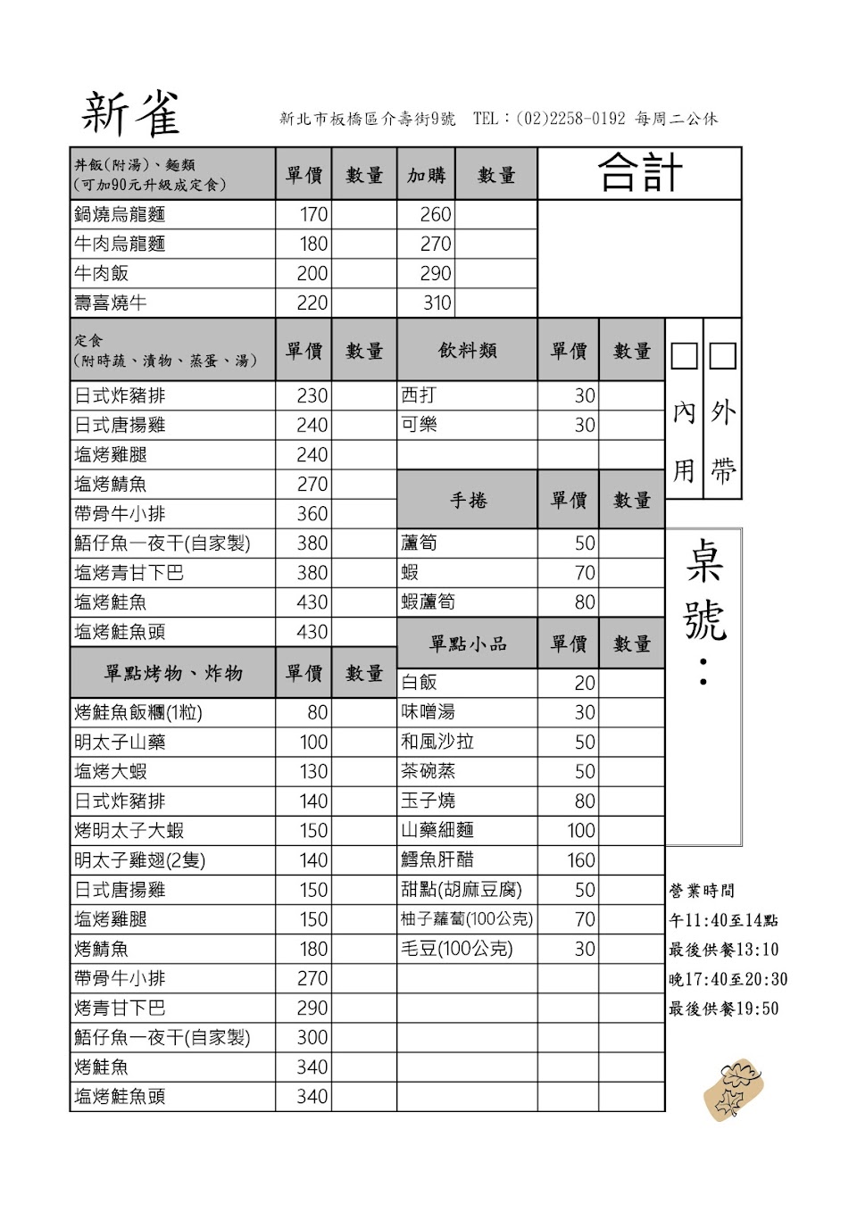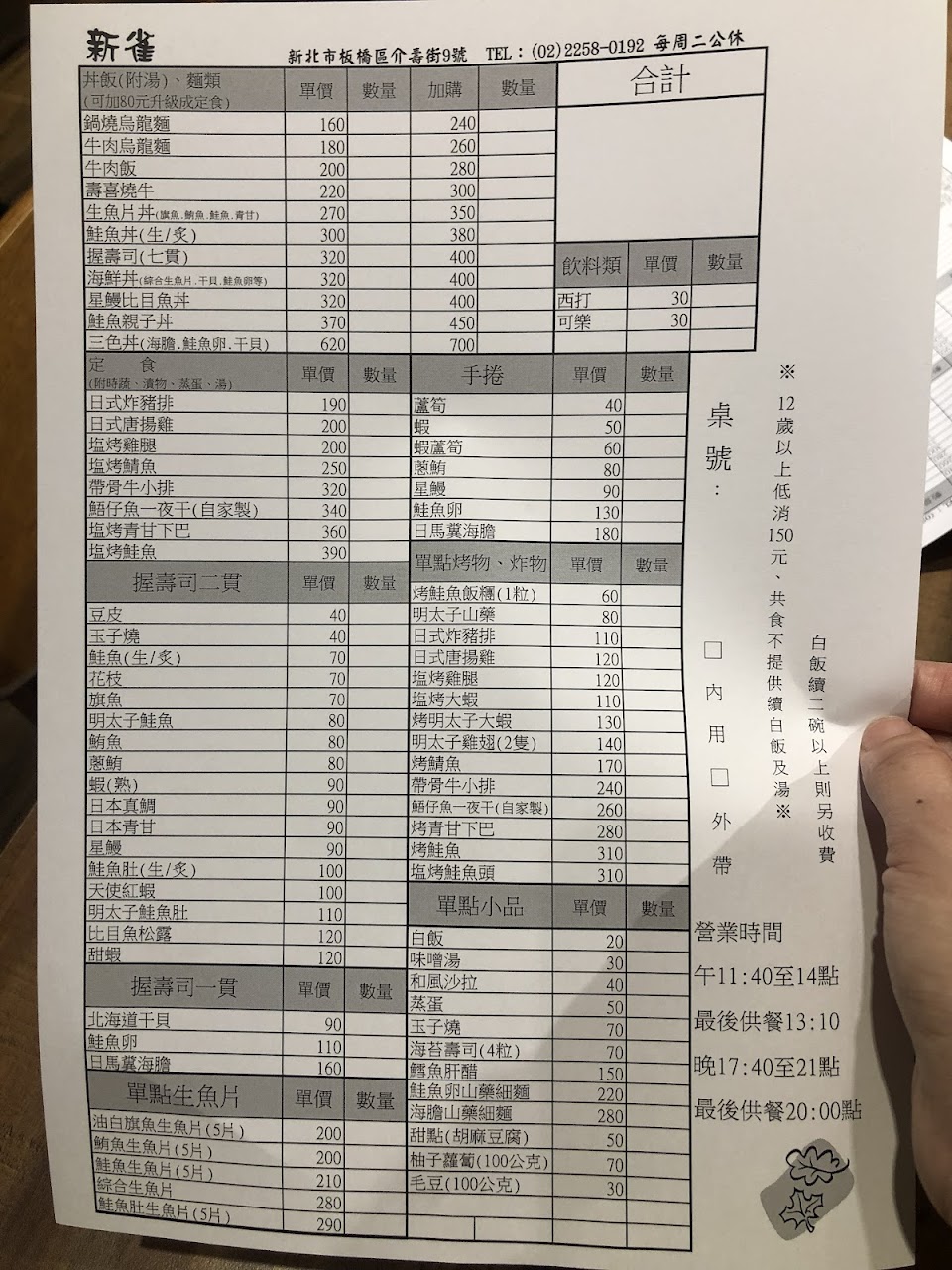(店家外小黑板有註明:每週二公休.人數到齊才能入座)