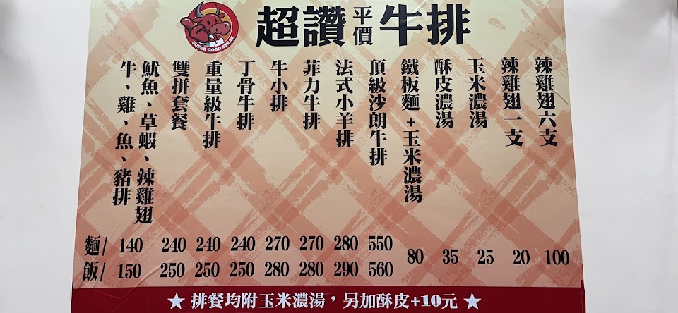 2024最新在地推薦餐廳的菜單_超讚牛排館的菜單、圖片