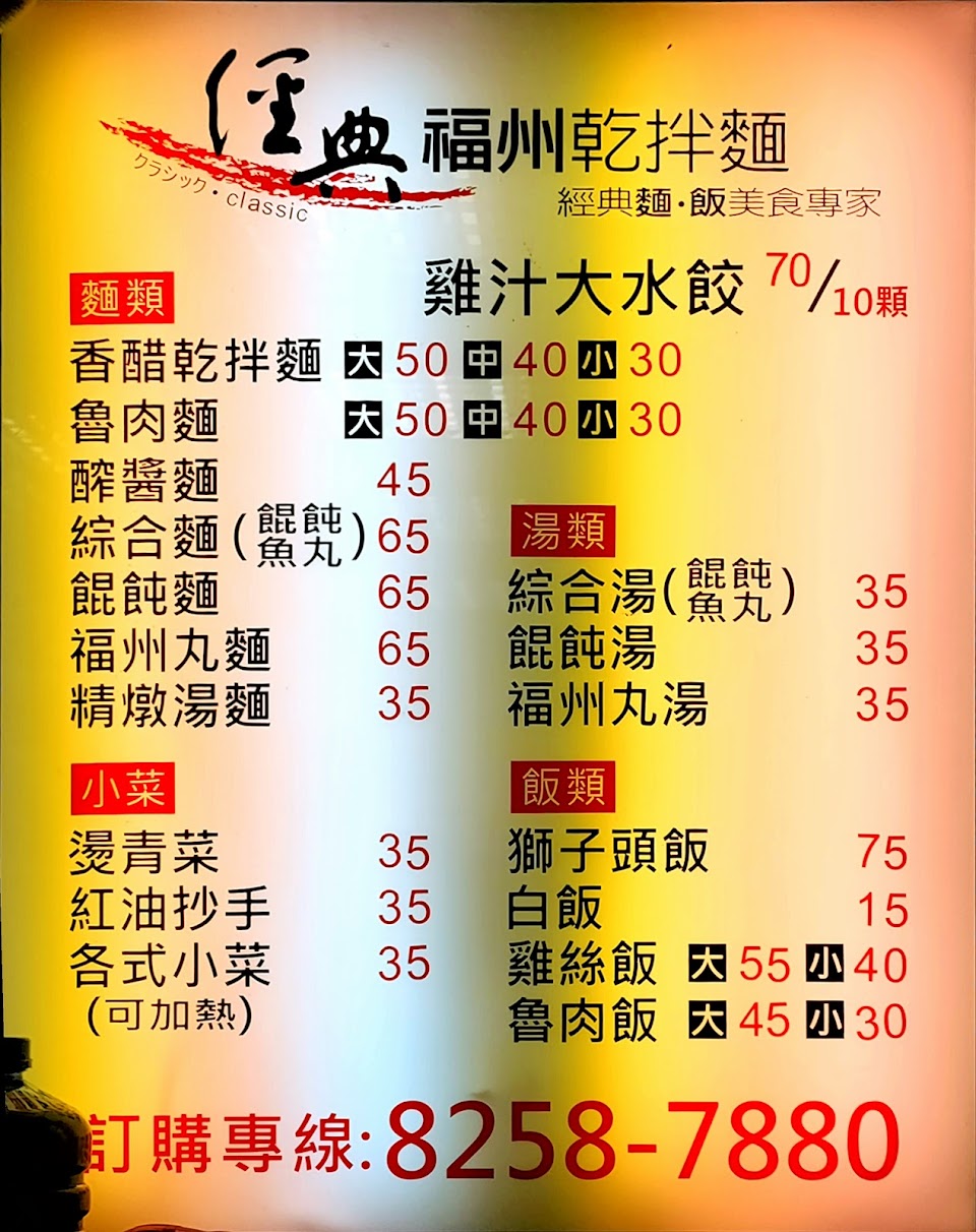 福州乾拌麵、福州魚丸湯、餛飩湯。