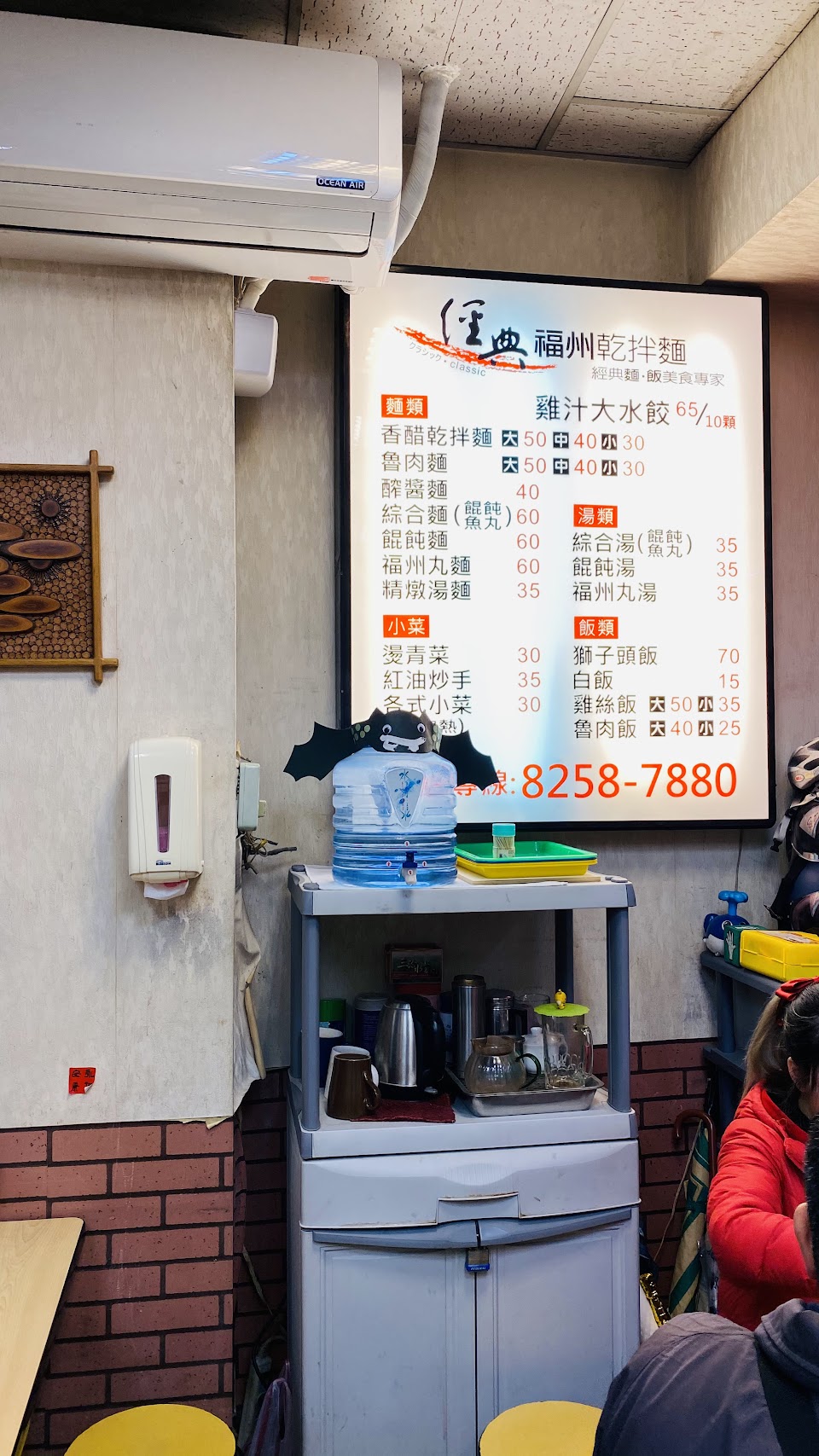 入店就拿單入坐,店家主要賣得是雞汁水餃和福州乾拌麵,菜單中九層塔的雞汁水餃和餛飩類都是必點。燙青菜是高麗菜和大陸妹各半,上桌後會給蒜蓉醬油,這個就只有簡單川燙過,所以隨個人喜歡沾蒜蓉醬油。