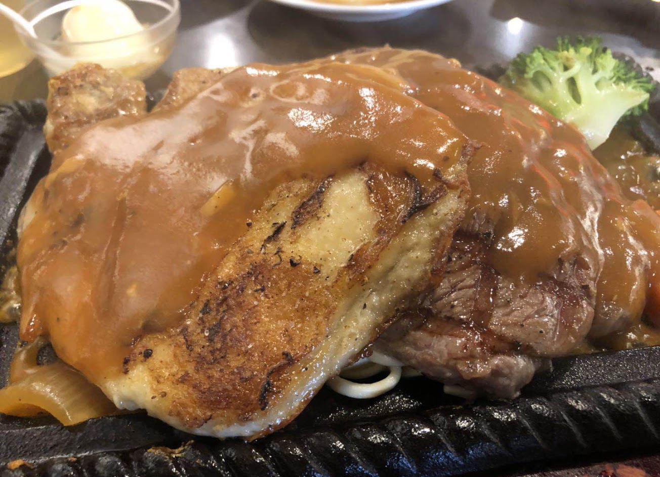 牛排嫩,豬排不柴,雞排有經過表皮油炸、很香脆。