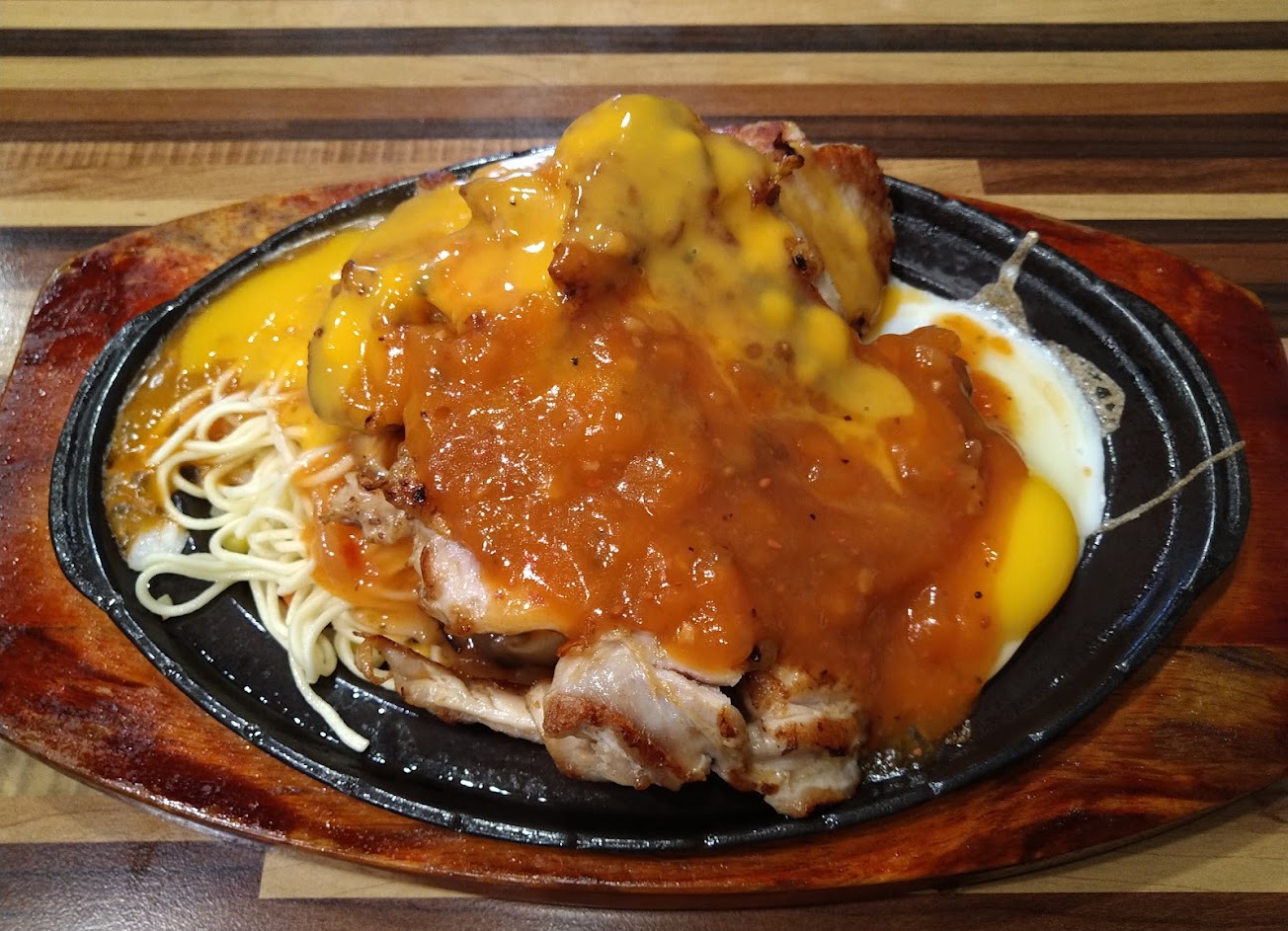 嗯 我點鮭魚雞雙拼黑胡椒醬