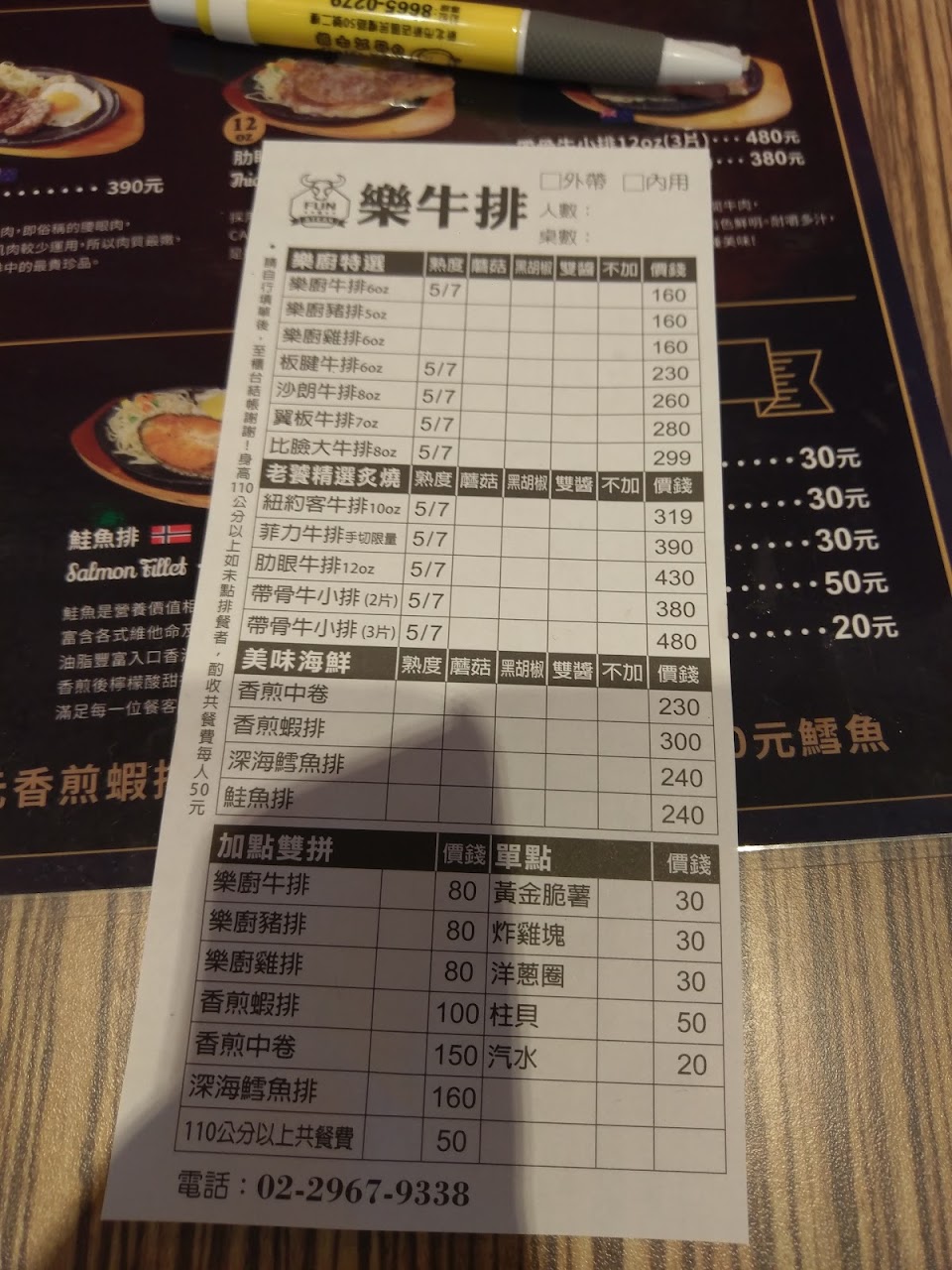 在油煙環境與悶熱天氣內用吃牛排,真的是很有味道!