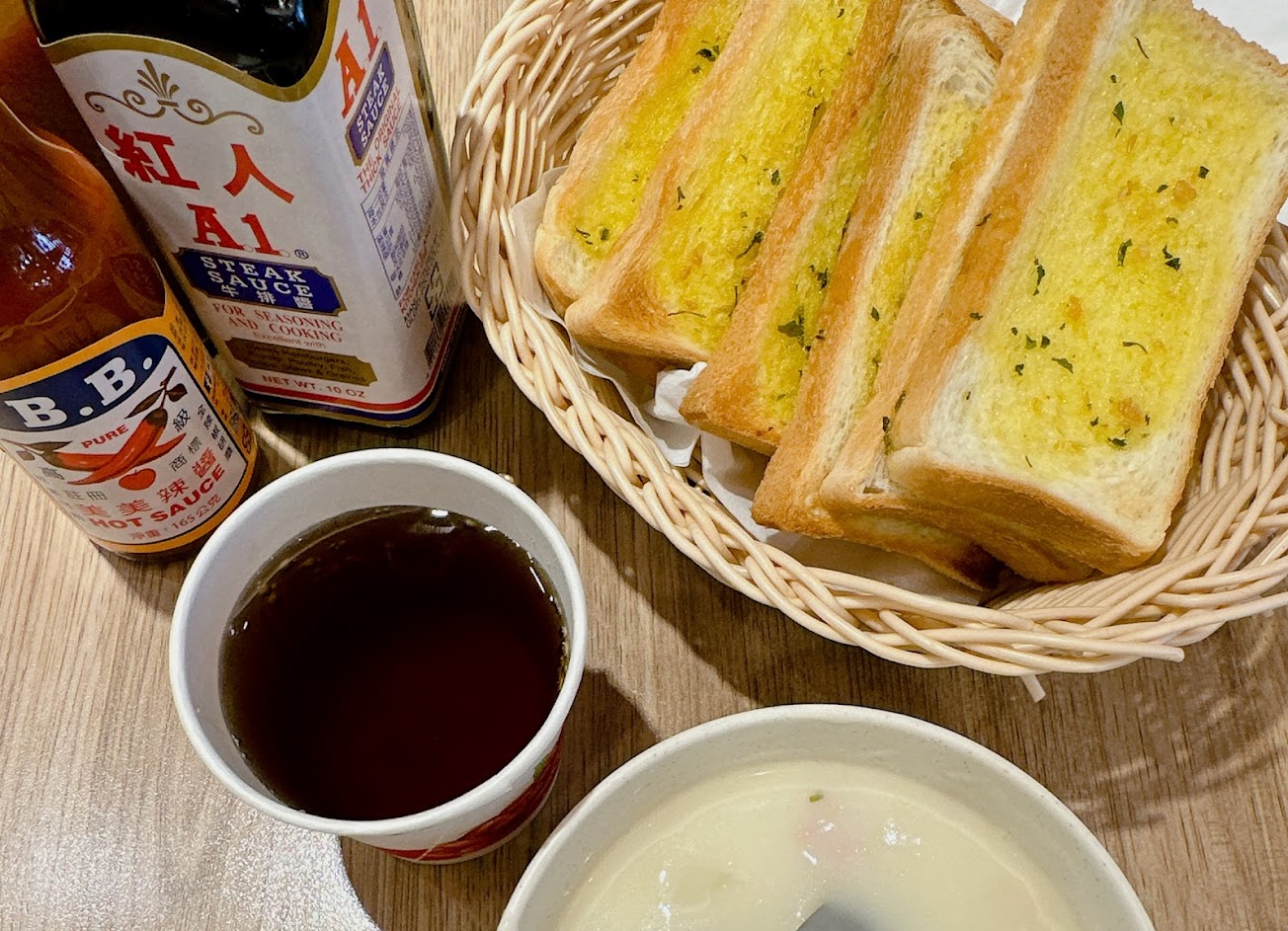 喜歡牛肉湯和玉米濃湯+沾蒜味吐司
