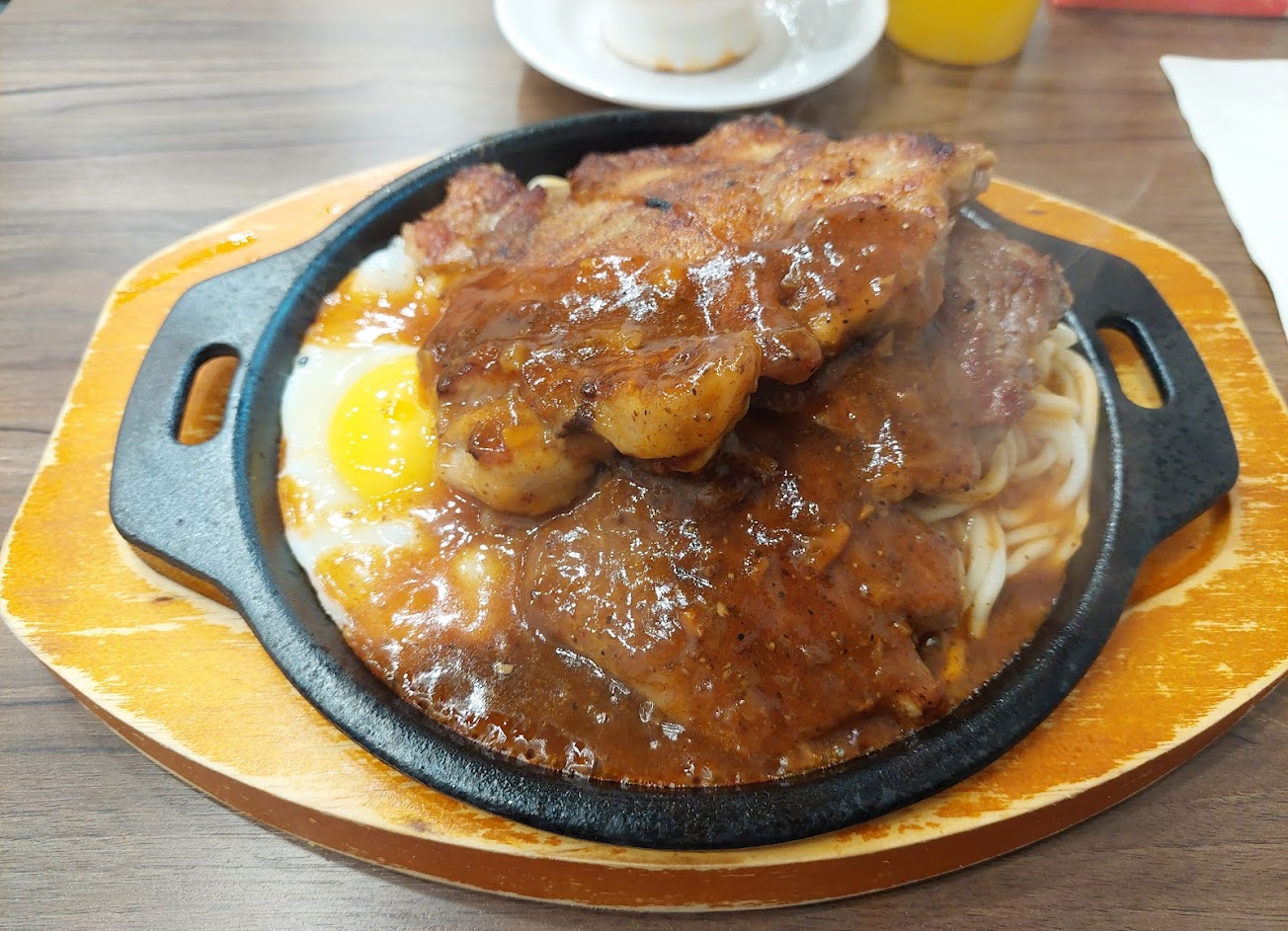 剛新開,態度還不錯,點了份牛雞雙拼,結果牛排就跟我去一般早餐店鐵板麵的肉排差不多大而已,CP值不高~