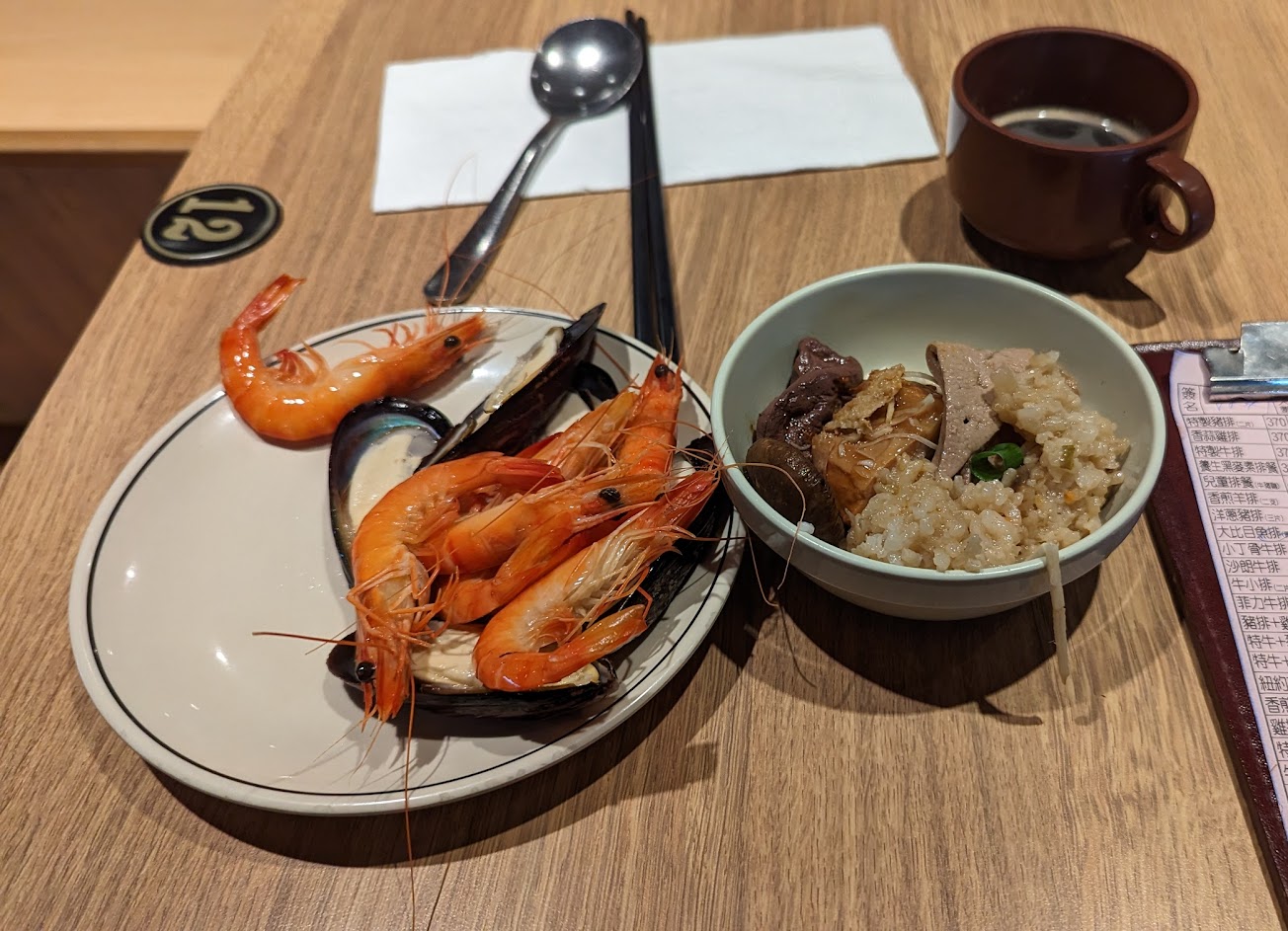 食物CP值高,收盤子很快,只是服務生清理隔壁桌太大力,抹布上清潔液噴到我的衣服一點一點。
