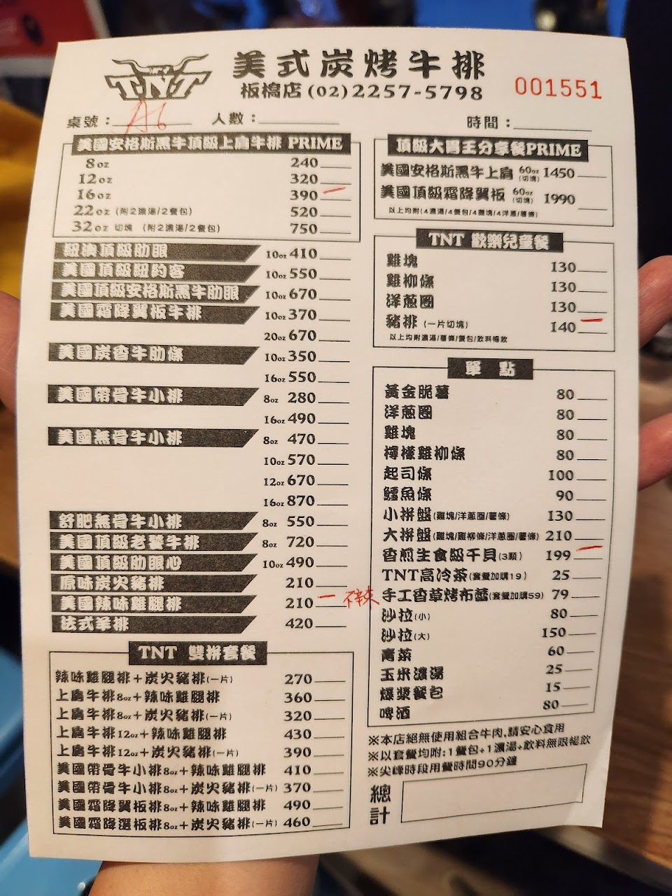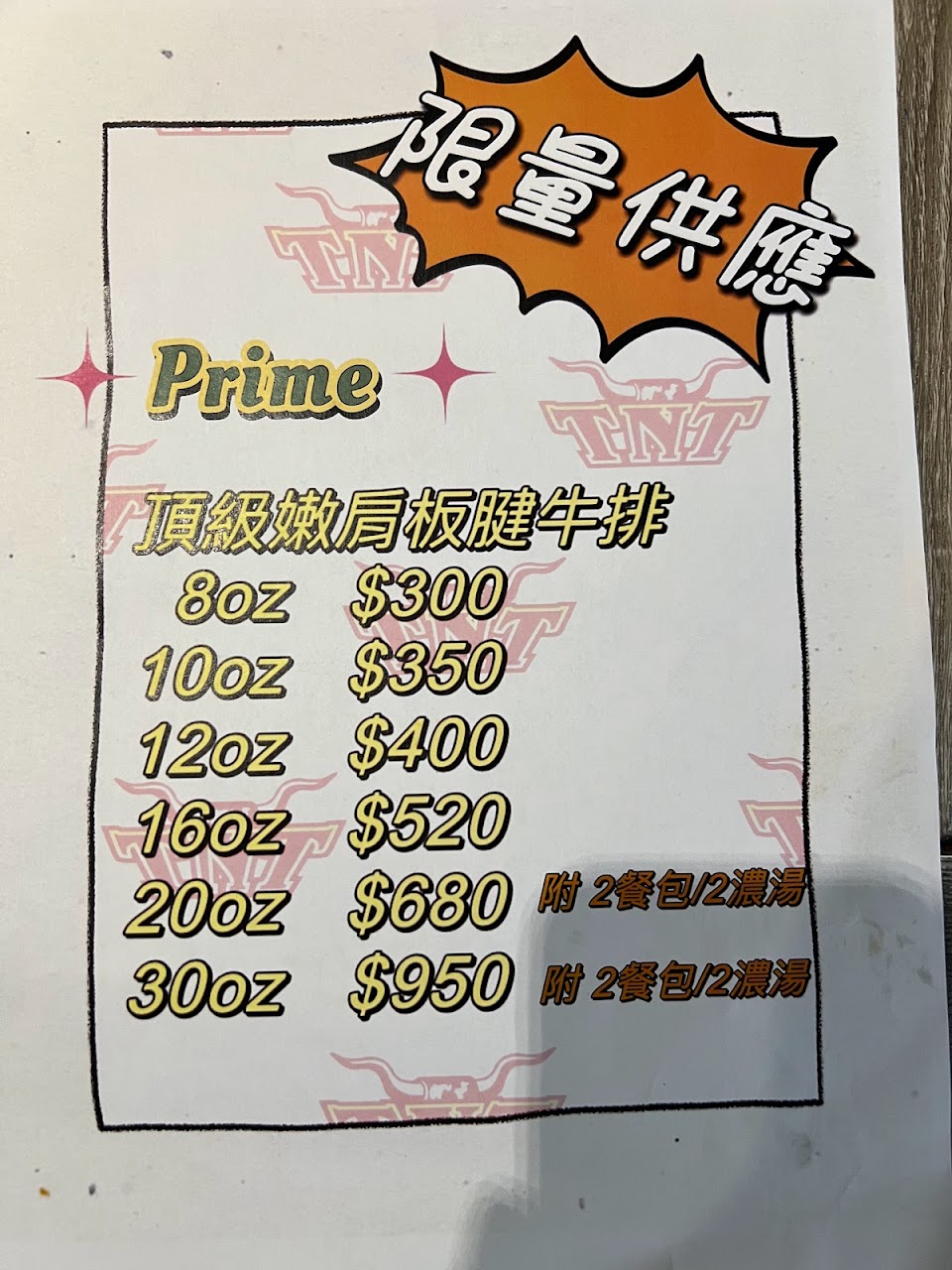 2024最新在地推薦餐廳的菜單_TNT美式炭烤牛排-板橋店的菜單、圖片