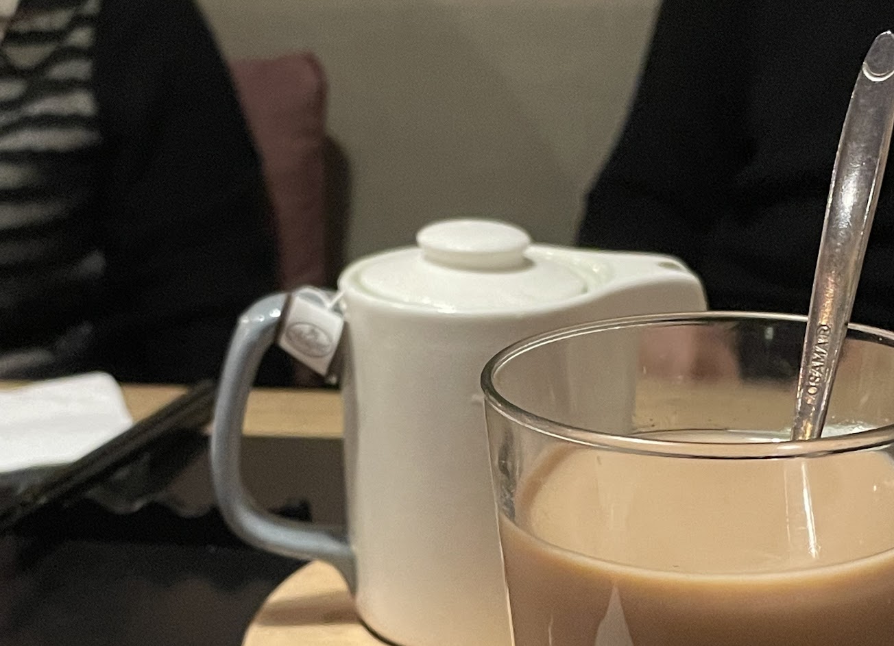 飲料是點奶茶,不加附上的糖漿的話沒有很甜,所以不用擔心太甜或不甜的問題,可以取決口味再自己加糖漿~不過畢竟是奶茶,所以喝起來就是比較甜蜜一點,解膩的話比較推薦蜜桃桔茶,不過蜜桃茶只有熱的~