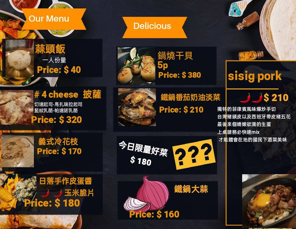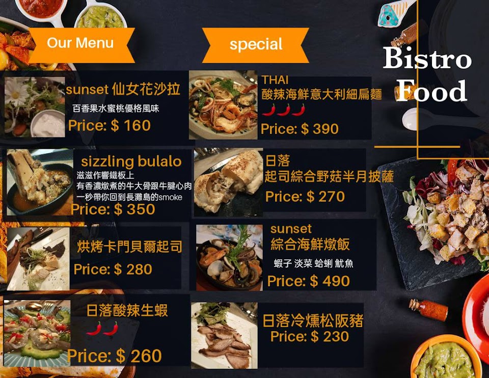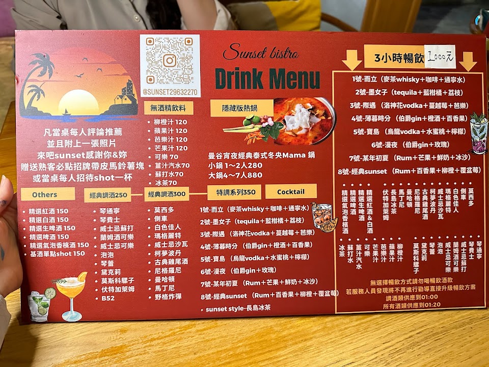 2024最新在地推薦餐廳的菜單_來吧 sunset南洋風餐酒館-酒吧調酒暢飲 訂位推薦 板橋車站附近 餐酒館泰式料理 必吃美食餐廳推薦 約會餐廳 必訪耶誕城餐廳酒吧 PTT Dcard 板橋酒吧 板橋餐酒館 taipeifood的菜單、圖片