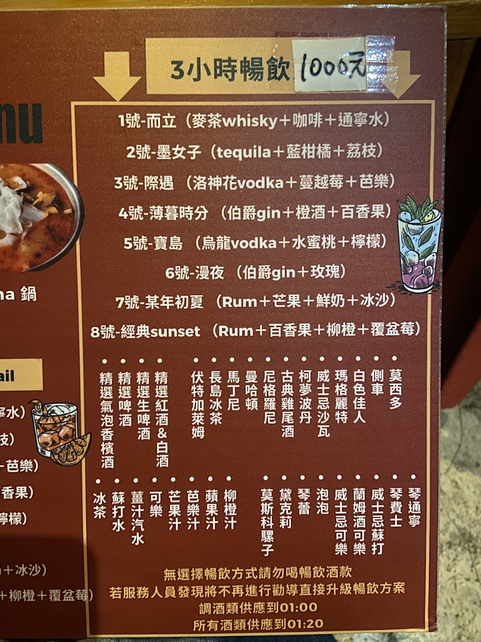 三小時1000元喝到飽的店家,