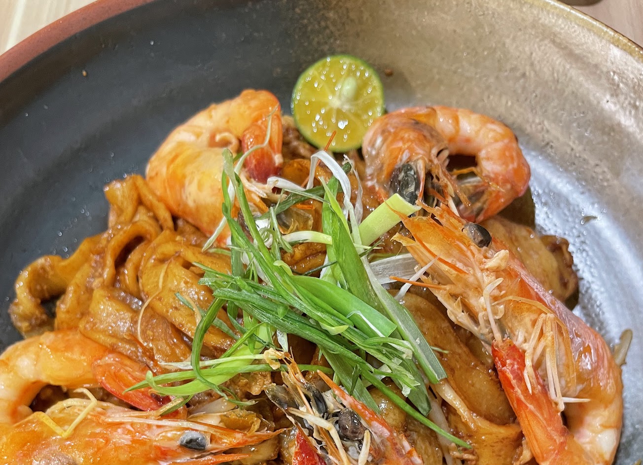 這真的超好吃!配他們另外給的綠色辣椒,QQ的河粉及他們用蝦頭煸出的蝦油加上主廚家傳私房配方醬料!那口感真的超絕~