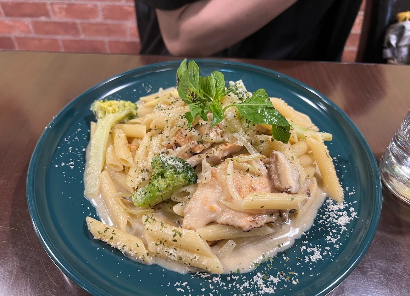 我個人點的是加購158套餐,整體來說很好吃!很少有平價的義麵會炒的很香!雞胸肉也像是先煎過再和麵一起清炒,附上的巧達濃湯配上乾酪麵包也很好吃。