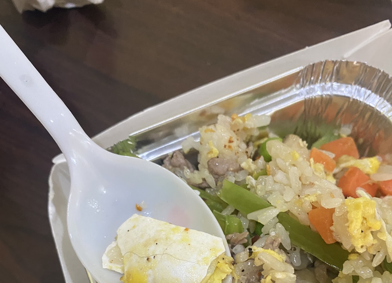 點了一個青椒牛肉炒飯,裡面有一個這麼大的蛋殼?都不會檢查的嗎??