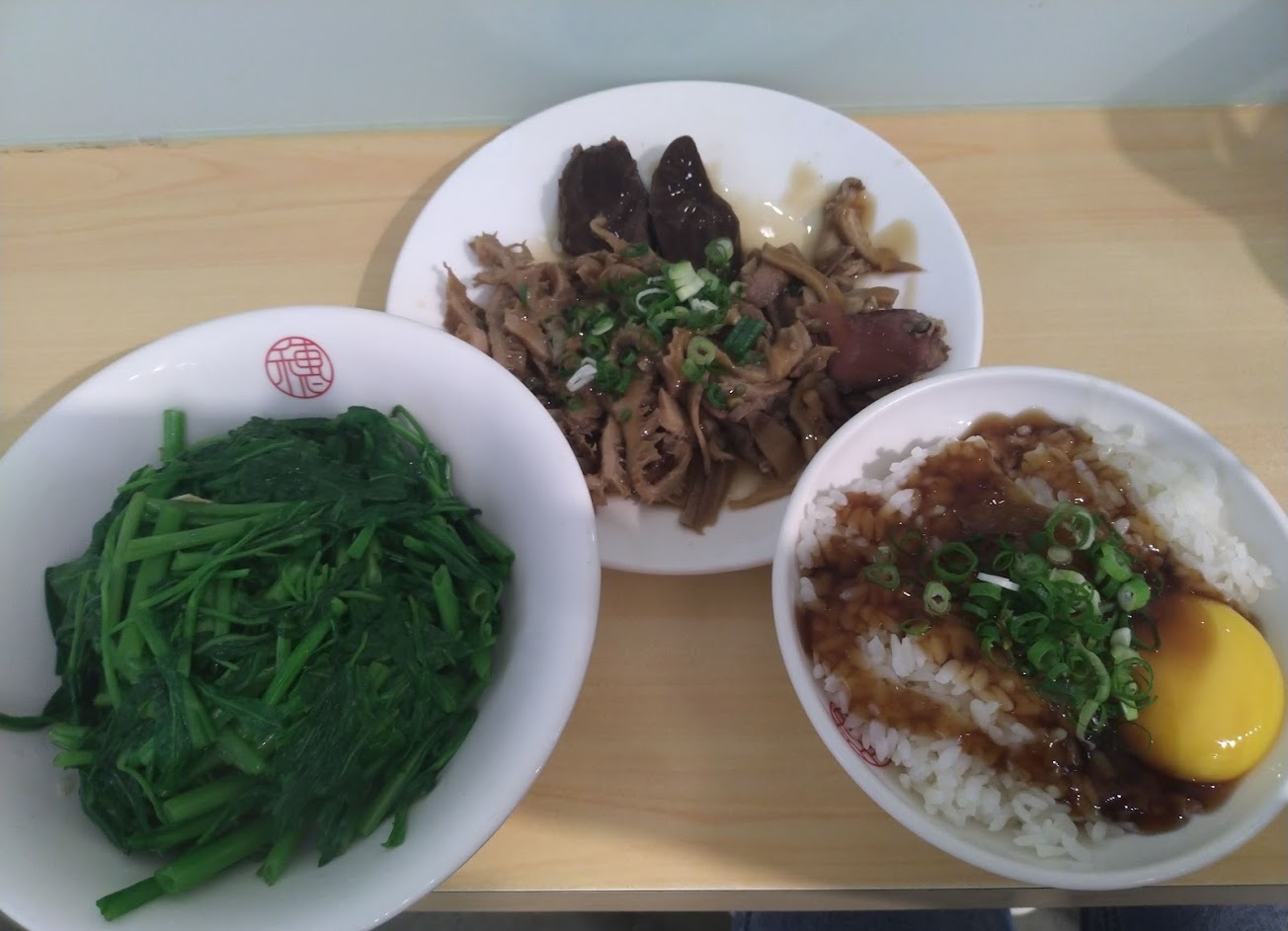滷味牛肉拼盤 份量十足 牛肚軟硬適中 滷汁口感偏甜 價格不貴 除了牛肉麵 還有貼心為不吃牛肉的人做多重選擇 如豐穗豬油拌飯 上面加了一顆生蛋黃 非常好吃