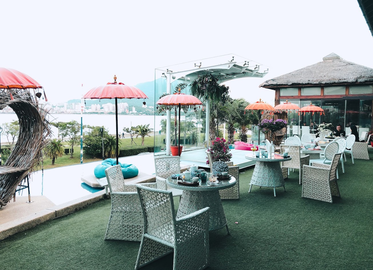 好天氣帶 #我的女王老婆、小孩來走走,原來八里有這麼多舒服觀海的餐廳,在充滿峇里島風格的餐廳坐室外,吹著涼風徐徐真的好舒服。