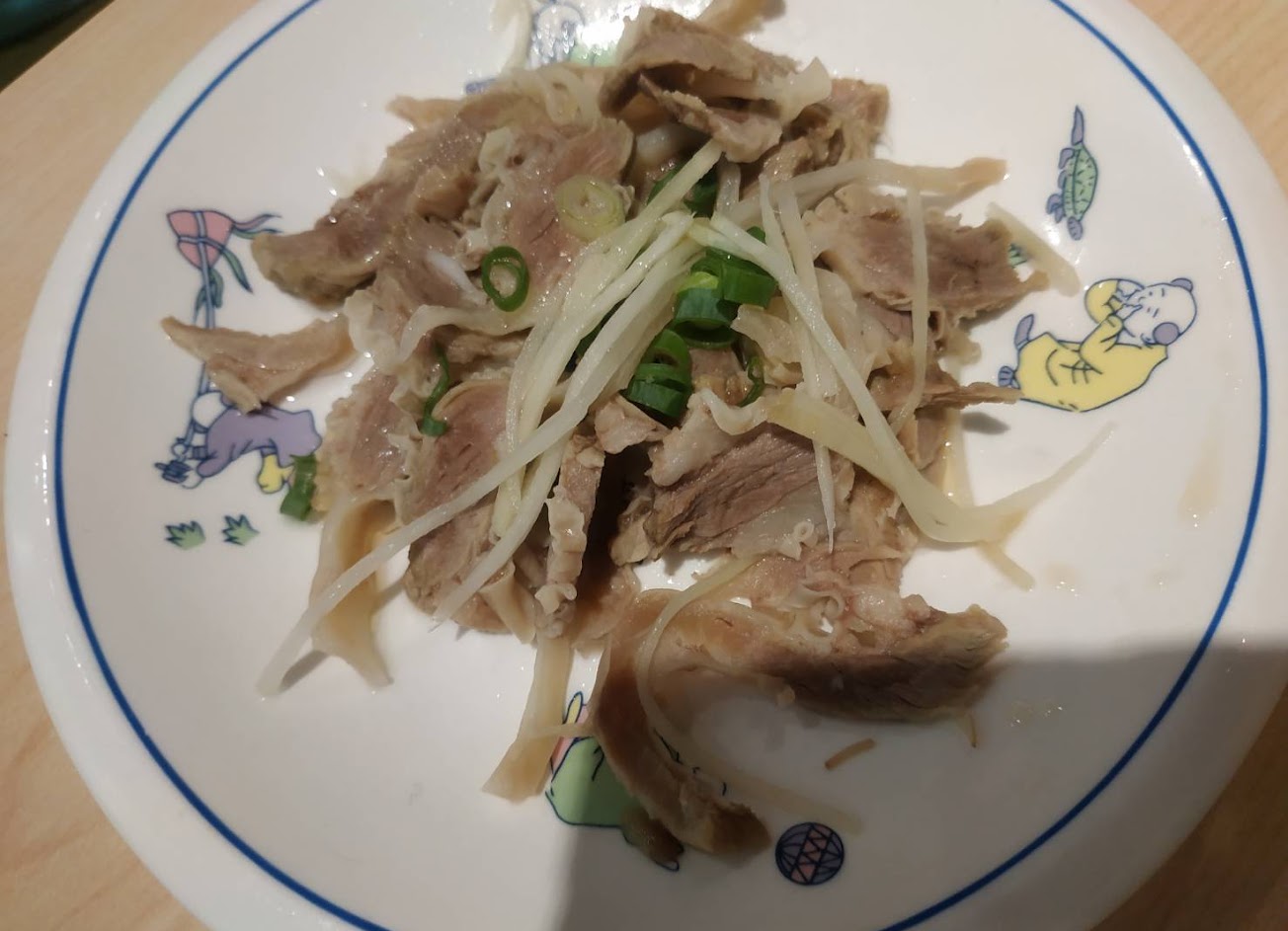 高麗菜水餃8顆56元,內餡飽滿算大顆,醬油微甜,整體好吃。麻辣雞肉飯50元,吃起來普通,麻辣醬是辣沙茶醬。雙醬麵60元,麻醬和炸醬混合,醬料給很多,口味好吃。燙青菜40元。有附一包醬菜-醃蘿蔔。