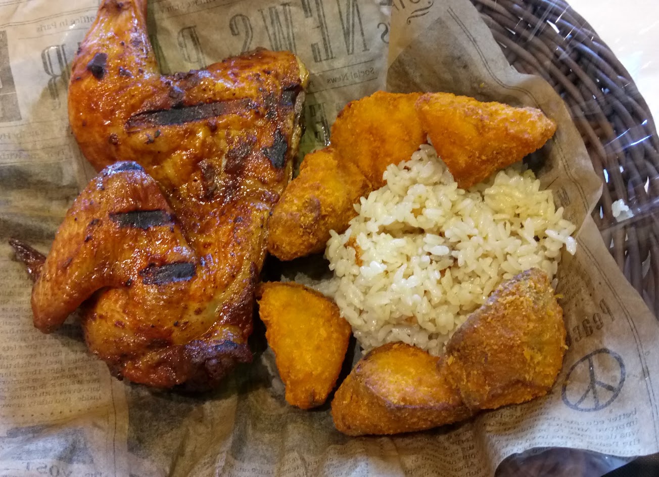 烤雞很多汁,雞飯跟地瓜球也好吃,服務環境都好