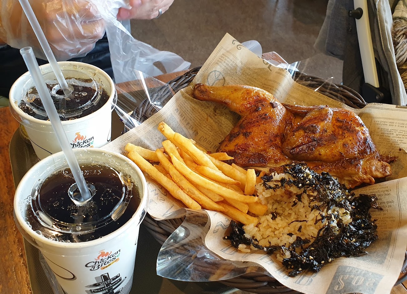 烤全雞賣完沒吃到,點了份雞腿套餐,雞腿超小跟照片差很多,不夠多汁味道也是普通…小菜只推地瓜,薯條、雞腿米花很乾味道也不行。