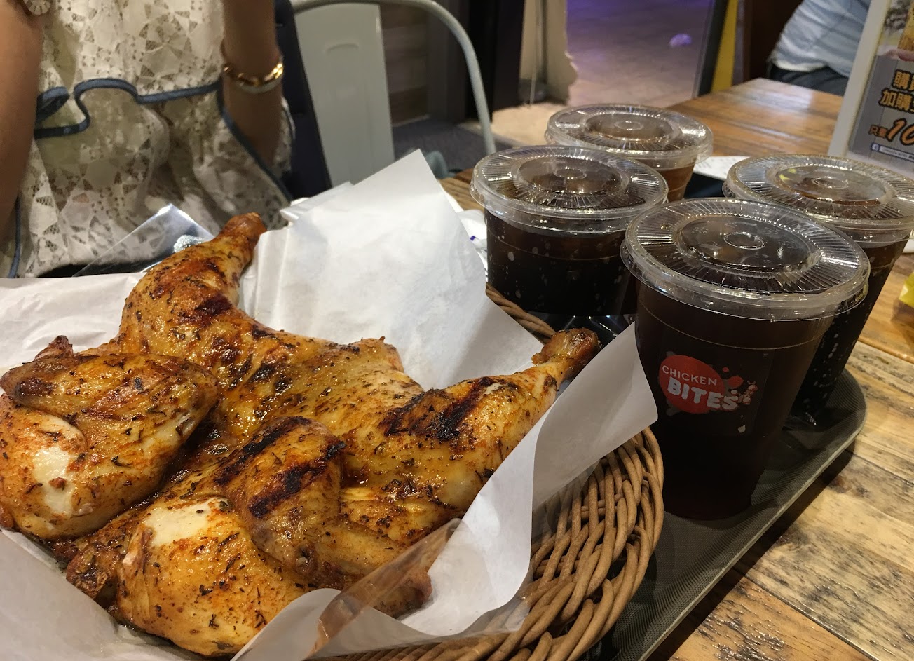 烤雞的皮是用噴槍噴脆的,肉是不柴有雞汁,不過味道跟老香雞城是兩種不同風味,我個人還是比較愛香雞城,下午去的時候點雞腿店員說要等二十分鐘以上,不得已點了馬上可以拿的半雞,價錢其實蠻貴的,沾醬味道吃不習慣,沙發椅和地板髒髒的,我個人是不會再去第二次啦,因為味道沒什麼特別的。
