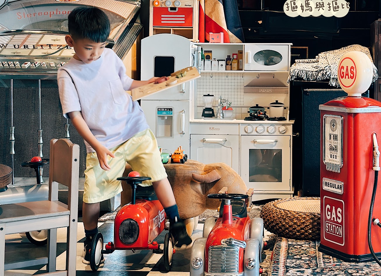 我們被室內「兒童遊戲區」和英倫風裝潢與重機相關收藏給震懾住!