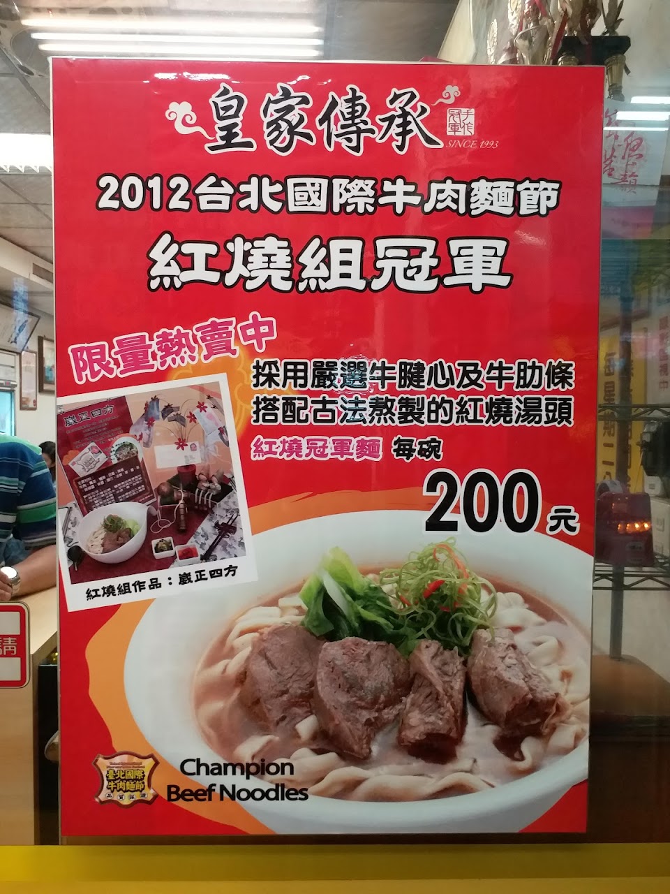 不行!不管什麼肉,一柴就先扣五十分,儘管電視新聞鬧得很大,吃東西重視的是料理本身,紅燒湯頭算是清爽不重鹹,家常麵條也中規中矩,就是牛肉不行,得幾個冠軍都一樣,肉一柴就不合格了。吃東西的感受是很主觀的,個人意見僅供參考