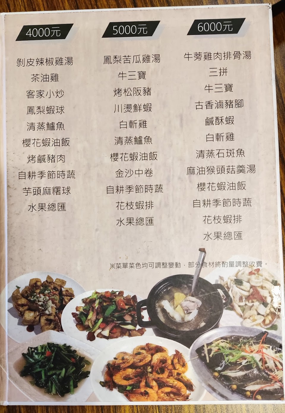 比較小可惜的是以合菜為主,想要亂單點的說,哈哈。但 4 人餐 $1500 也都很好吃,有白斬雞半隻、金沙中卷、牛三寶、蛤蜊湯我們換成苦瓜鳳梨雞??、時蔬我們選紅鳳菜。然後再加點拔絲鹹甜地瓜芋頭和涼拌竹筍。