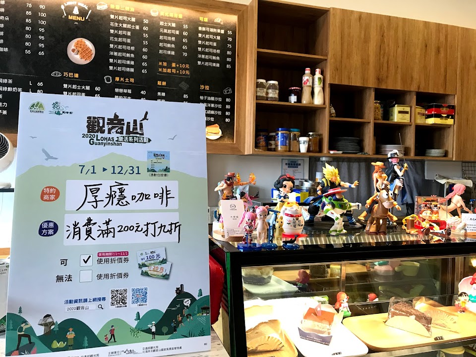 厚隱咖啡位在八里區市內,是一間在地小咖啡店,內用有許多位置,有簡餐、點心、蛋糕、咖啡、茶飲等等,適合有路過時來坐一下的去處。