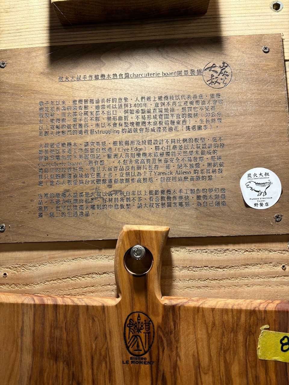 更吸引人的是右邊牆上的義大利橄欖木砧板,漂亮的木質花紋、沈重的手感,讓人忍不住帶一個回家。