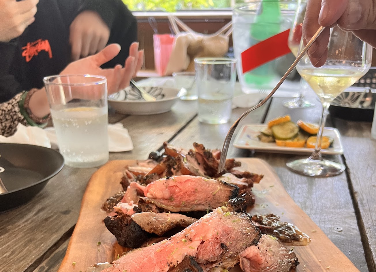 肉經過炭火燒烤後非常適合來杯紅酒