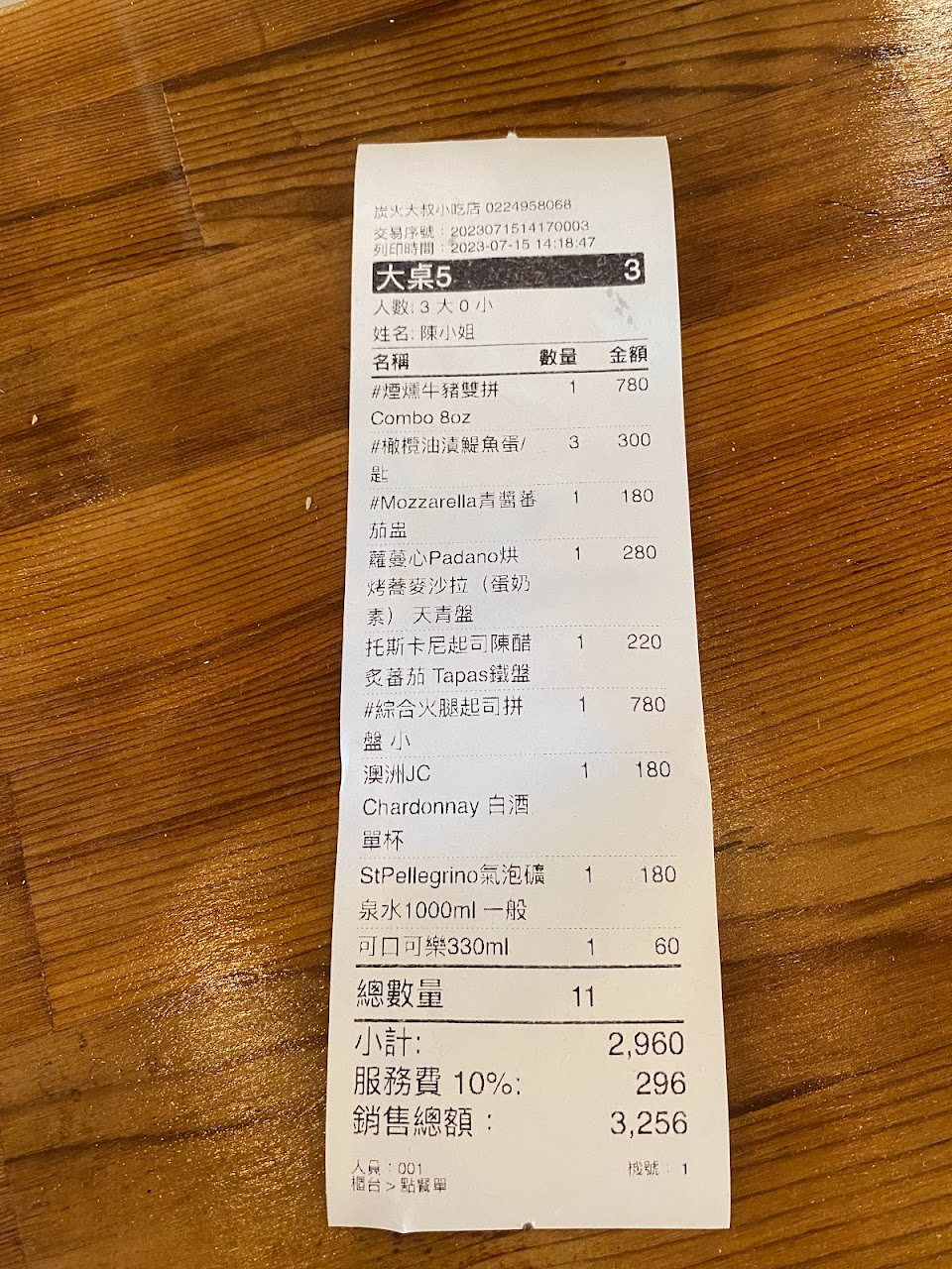 餐點:5