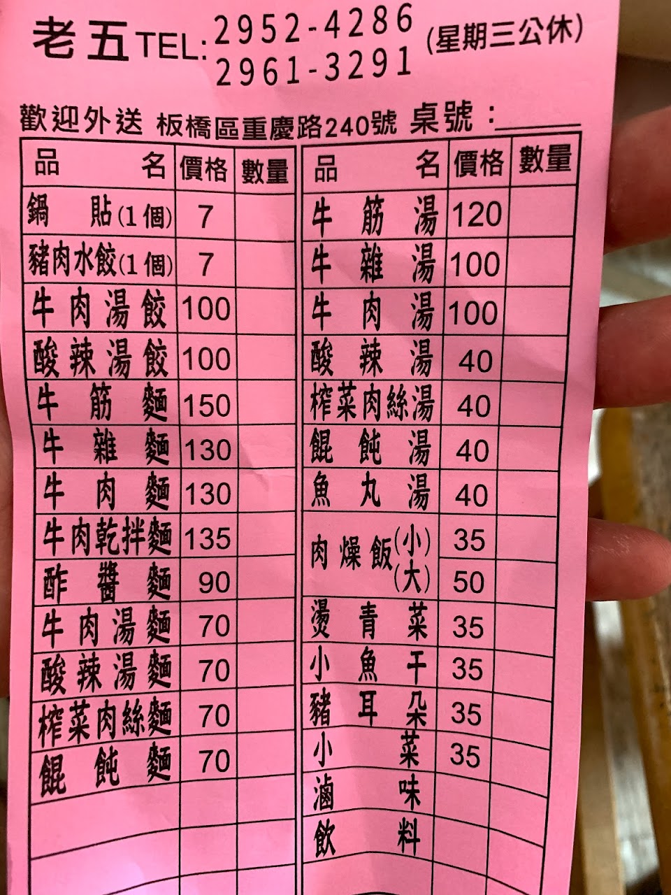 2024最新在地推薦餐廳的菜單_老五鍋貼牛肉麵的菜單、圖片