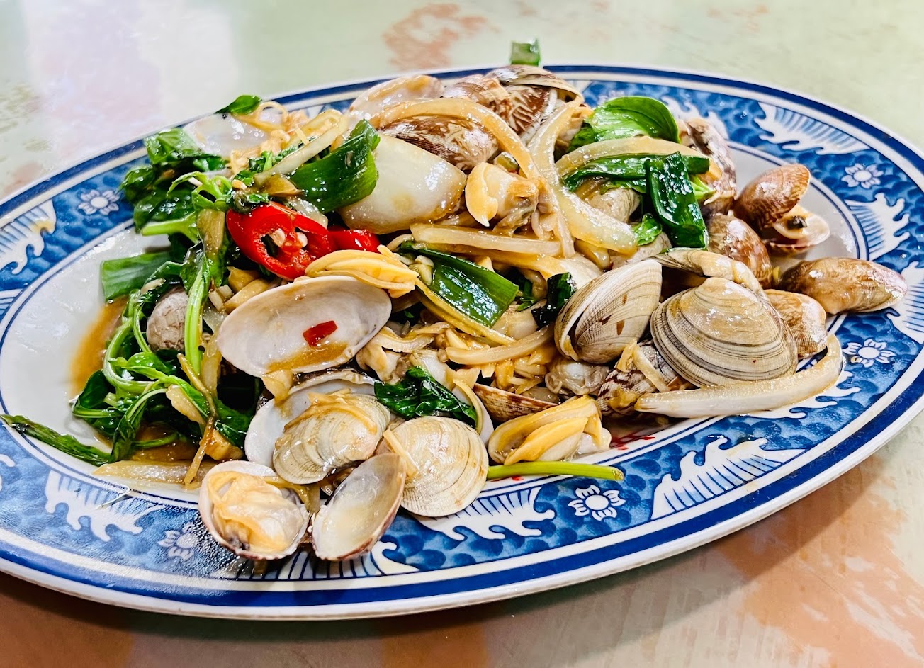 物美價美的老字號餐廳,早上10:40就到了,先在停車場觀海,有和煦的陽光以及淺淺的浪花。不到11點已經有好幾桌開吃了,餐點可以選擇大、中、小的份量,我們兩大一小,全是中等份量,完食喔!白斬雞肉質鮮嫩多汁,清炒水蓮用香菇提味,食物調味偏重一點,真的很下飯,搭配滋味清甜的蛤蜊湯恰到好處。用完餐在回程路上可以看看海景,愜意的假日去處。