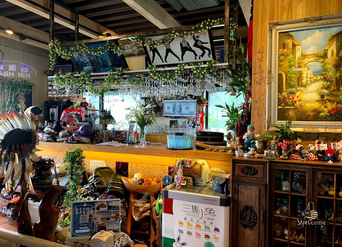 店裡的收藏可以看出店主是個懂得享受生活有品味的人,用餐的座位位置及景致也是別出心裁,讓人感到很放鬆用餐愜意的氛圍。