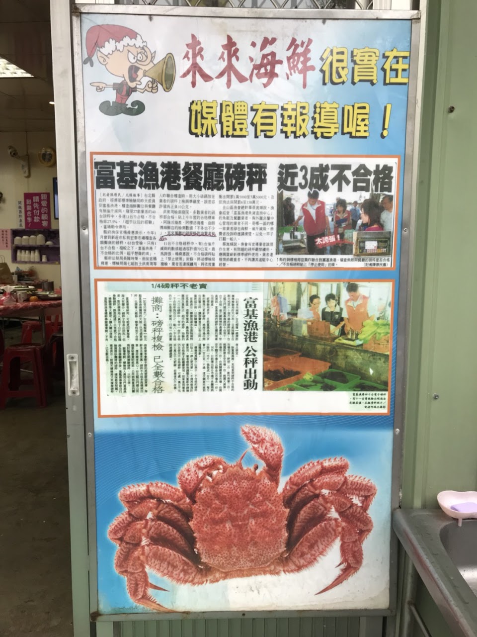 上週五來用午餐,在店裡點菜還要外加烹飪費,先別論價錢高於一般餐廳。用餐環境簡陋,餐桌舖塑膠紙、用風會吹走的紙碗、免洗筷、塑膠碟⋯,富基漁港幾十年未變,墮落至極。台灣餐旅業想要提升觀光,還早得很。