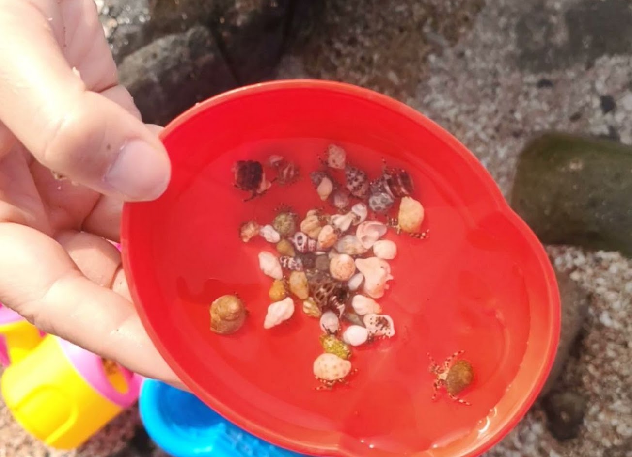 豐富的海岸地形,沙子、礁岩、適合幼幼的淺水池、給大孩子的深水區,還有很多潮間帶生物,孩子們玩得不亦樂乎