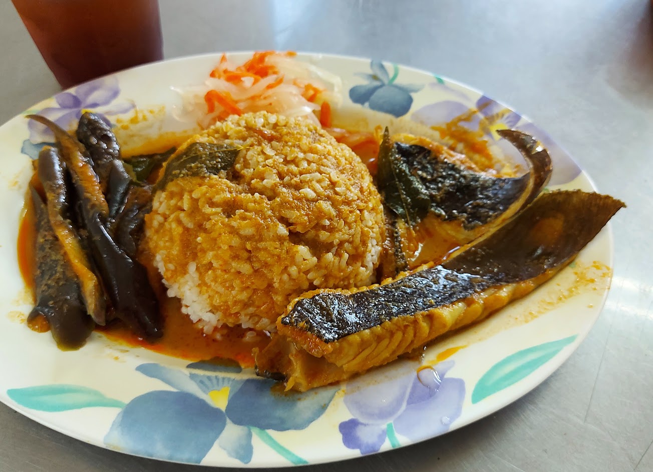 魟魚60 很特別第一次吃到,肉質滑嫩配上老闆家的馬來西亞咖哩,還附上茄子跟酸甜洋蔥,很下飯