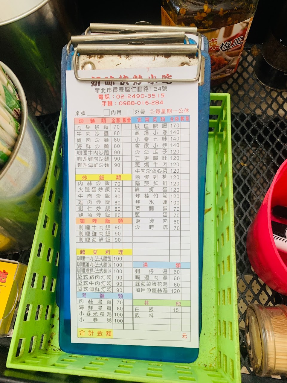 11/16 中午雙人用餐,1.蔥爆牛肉:口味偏甜。2.炒海瓜子。3.炒高麗菜。CP值高,對面有7-11及廟宇可停車。闆娘應是越南新住民,有越式麵包。