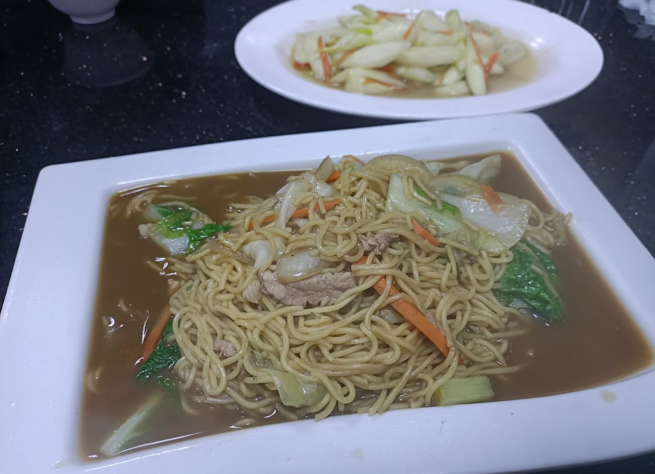 超大一盤的一人份炒麵,小卷鮮甜,筊白筍好好吃,350元的清蒸鱸魚新鮮味美完全沒有土味